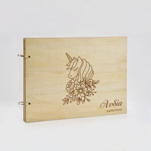 Ξύλινο Βιβλίο Ευχών με Χάραξη Unicorn