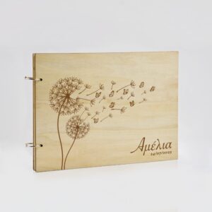 Ξύλινο Βιβλίο Ευχών με Χάραξη Dandelion
