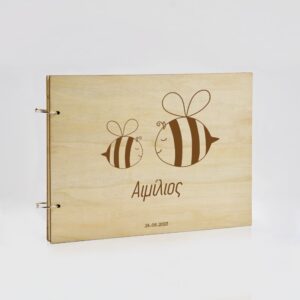 Ξύλινο Βιβλίο Ευχών με Χάραξη Μελισσούλα