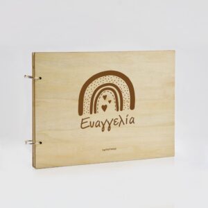 Ξύλινο Βιβλίο Ευχών με Χάραξη Ουράνιο Τόξο