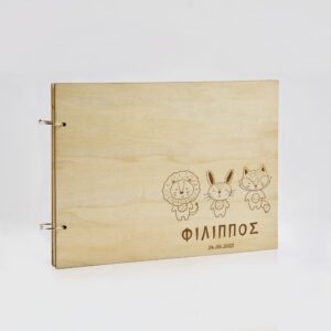 Ξύλινο Βιβλίο Ευχών με Χάραξη Ζωάκια