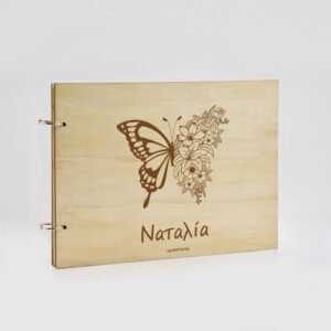 Ξύλινο Βιβλίο Ευχών με Χάραξη Πεταλούδα