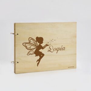 Ξύλινο Βιβλίο Ευχών με Χάραξη Νεράιδα
