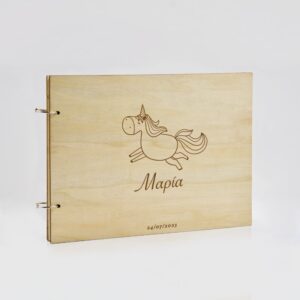 Ξύλινο Βιβλίο Ευχών με Χάραξη Unicorn