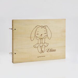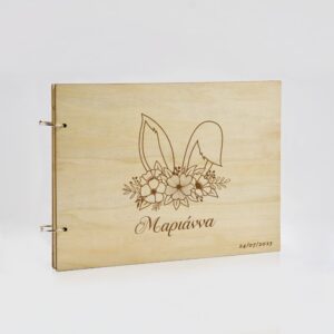 Ξύλινο Βιβλίο Ευχών με Χάραξη Κουνελάκι