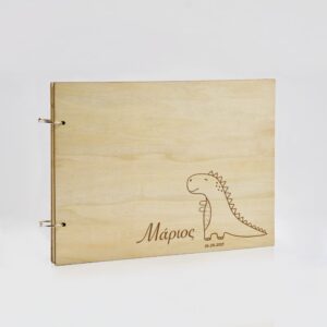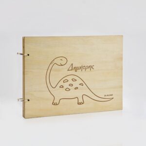 Ξύλινο Βιβλίο Ευχών με Χάραξη Δεινόσαυρος