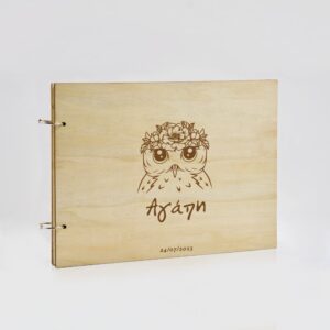 Ξύλινο Βιβλίο Ευχών με Χάραξη Κουκουβάγια