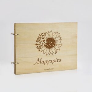 Ξύλινο Βιβλίο Ευχών με Χάραξη Ηλιοτρόπιο