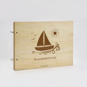 Ξύλινο Βιβλίο Ευχών με Χάραξη Καραβάκι